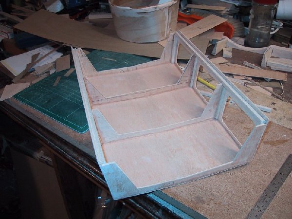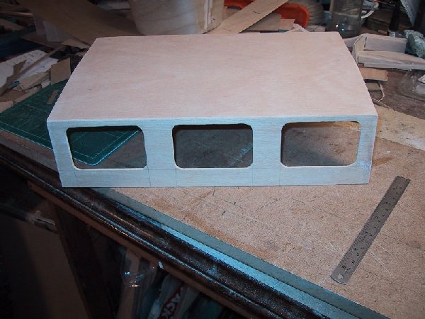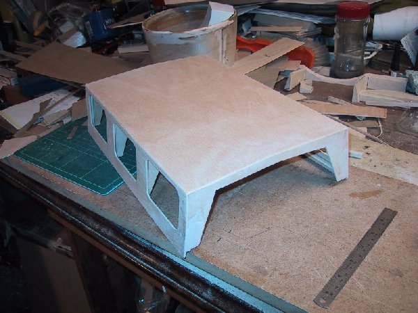 Construction is as per the rest of the superstructure and consists of light ply and balsa. Celluloid is used for the windows.