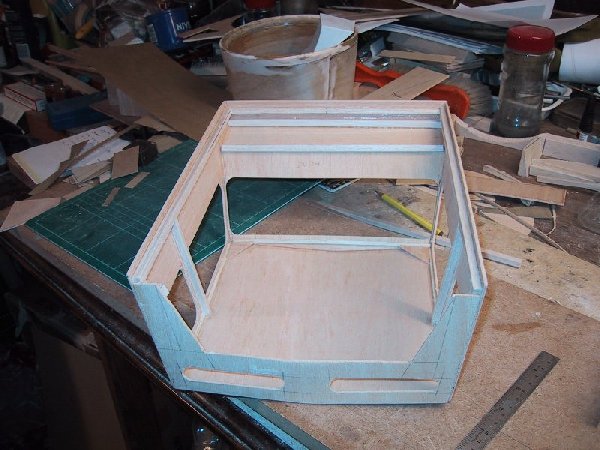 The superstructure was built as three separate units to facilitate access to the base so that changes could easily be made. The front cabin is the first of the three units.